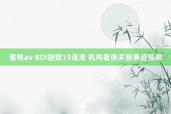 蜜桃av BDI指数15连涨 机构看很多股事迹预期